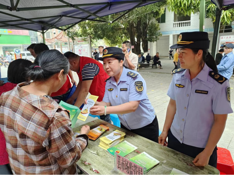 3月27日,2026年广西壮族自治区防城港市第一季度文化科技卫生“三下乡”暨“我们的中国梦——文化进万家”惠平易近表演勾当正在上思县街心公园举行,上思县市场监管局组织工做人员参加开展宣传办事,把食物平安、消费及养老防诈骗学问送到群众身边。